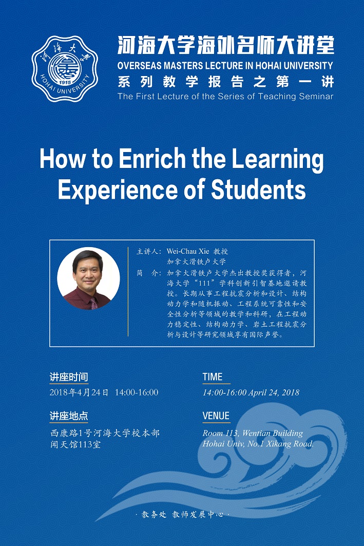 Wei-Chau Xie教授,加拿大滑铁卢大学杰出教授,获滑铁卢大学杰出教师奖和教学优秀奖。开云电竞网“111”学科创新引智基地邀请教授。长期从事工程抗震分析和设计、结构动力学和随机振动、工程系统可靠性和安全性分析等领域的教学和科研,在工程动力稳定性、结构动力学、岩土工程抗震分析与设计等领域享有国际声誉。先后主持了多项国际和加拿大国内的重大科研项目,系统研究了工程动力稳定性、结构随机振动、核电站工程地震风险性分析等关键科学技术问题。发表SCI收录学术期刊论文100余篇,会议论文50余篇。由剑桥大学出版社(Cambridge University Press)出版的《Dynamic Stability of Structures》为首部系统阐述工程结构在确定和随机载荷下参数稳定性现代理论的学术专著,获得国际同行学者的高度评价;由剑桥大学出版社出版的《Differential Equationsfor Engineers》被国际上很多知名大学选为指定教材。担任过《Mechanics Based Design of Structures and Machines》等四家国际期刊的副主编、编委和特邀编辑,五个专业委员会委员,主持7场国际会议,是十余个国际一流期刊的审稿人。