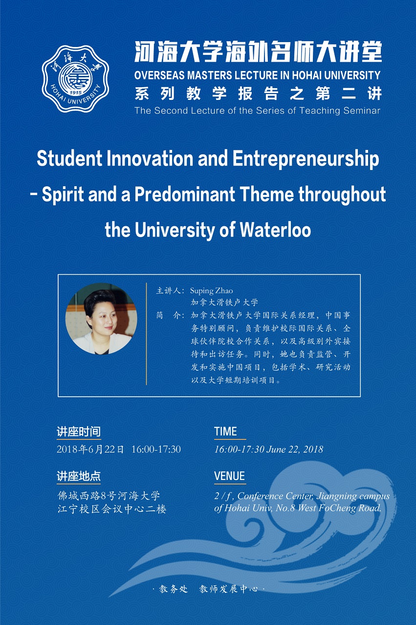报告人简介: Suping Zhao,加拿大滑铁卢大学国际关系经理,中国事务特别顾问,负责维护校际国际关系、全球伙伴院校合作关系,以及高级别外宾接待和出访任务。同时,她也负责监管、开发和实施中国项目,包括学术、研究活动以及大学短期培训项目。她曾任滑铁卢大学环境学院“中国生态规划项目”主管,该项目由加拿大国际开发署资助;还曾在澳大利亚昆士兰教育部门帮助开设语言课程。在加拿大和澳大利亚任职之前,赵女士还在中国多所大学的国际处任职,还任英语学院语言学副教授。她积极参与国际化活动,参加过QS-APPLE、APAIE等世界一流的国际教育会议,主持过“合作教育,研究生就业的典范”、“联合教育,打造全球公民的绝佳途径”等讲座。