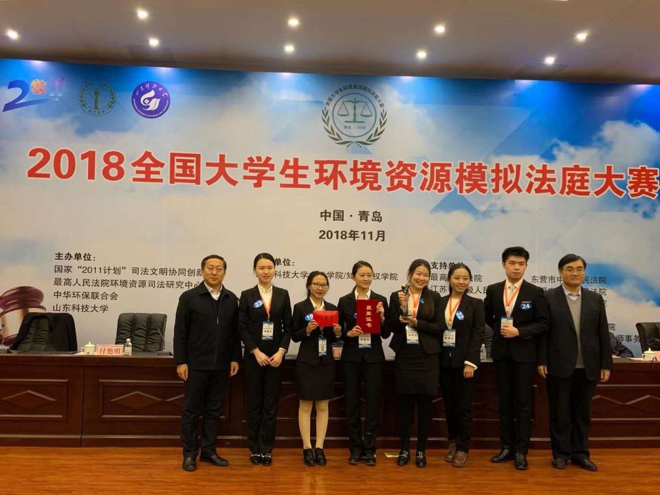 11月18日,在第七届全国大学生环境资源模拟法庭大赛上,我校“水之子”队荣获冠军,晋海老师荣获优秀指导老师奖,杨卓超同学荣获最佳选手奖。
