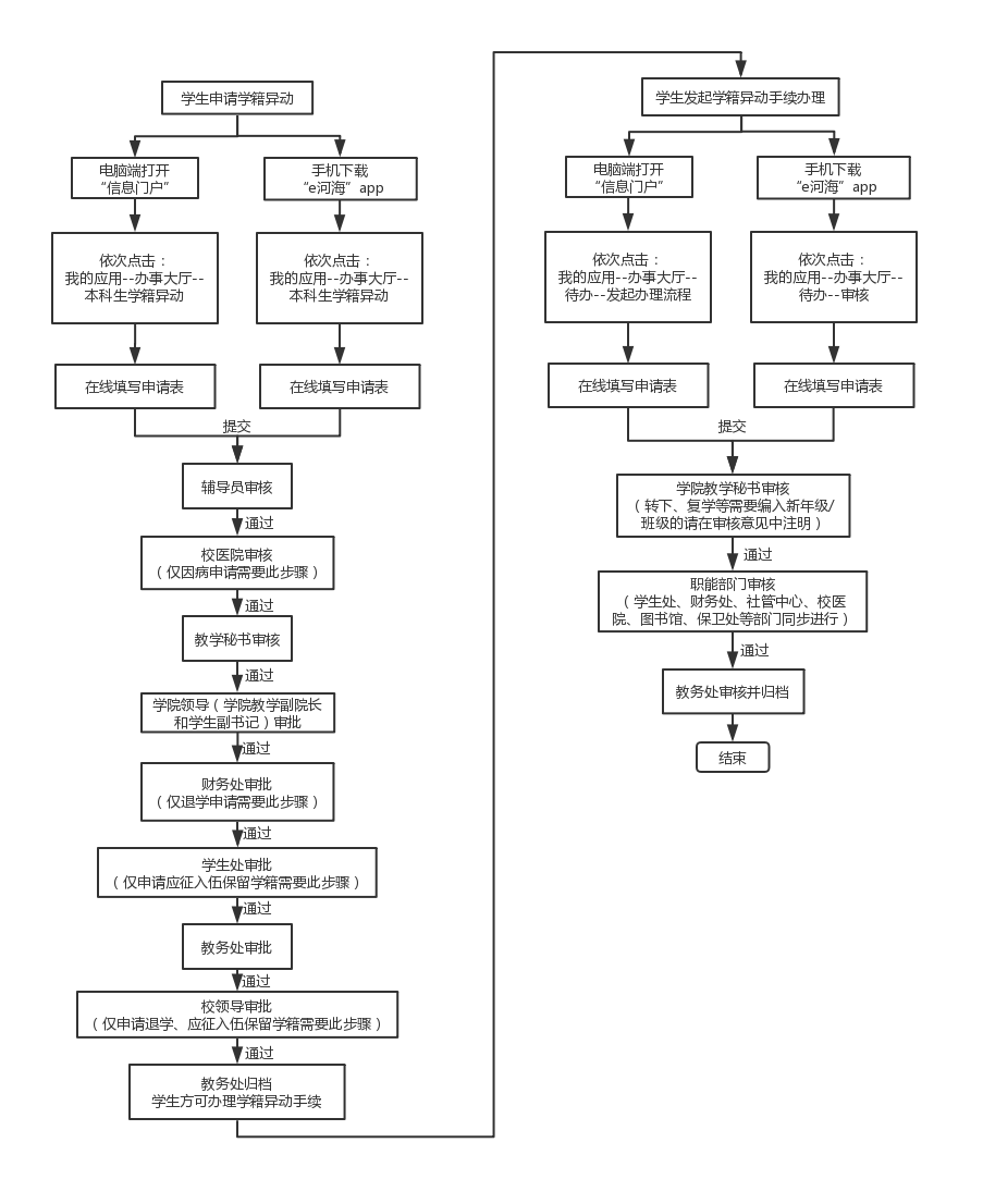 附:开云电竞网学籍异动(包括休学、退学、复学、转入下一年级、应征入伍保留学籍、新生保留入学资格)流程