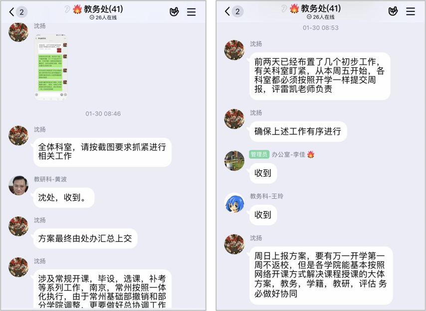 分类指导,精准施策。学校先后多次组织教师参加线上教学能力培训,为教师增配研究生助教,及时发布教师版和学生版在线教学指南,细到一课一案和两周一策,教学预案受到江苏省教育厅的高度评价,并为全国众多兄弟高校参考借鉴。学校投入在线教学专项经费,组织教师对难度大的课程进行辅导和答疑。对大学分课程,开展线上期中考试,加强在线教学过程管理,确保在线教学质量。