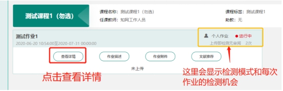 如上图,点击右侧“查看详情”。右侧会显示作业的检测模式和每次作业的检测次数。