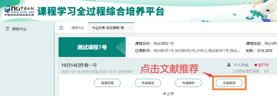 教师在下发作业时,可以进行“文献推荐”。