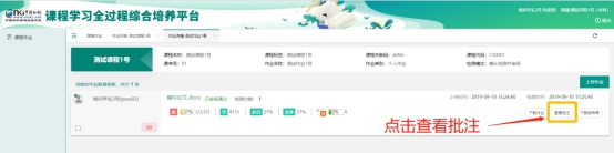 老师可以在系统中,对学生提交的作业进行“在线批注“。教师批注后,学生可以如下图操作,进行查看。