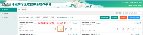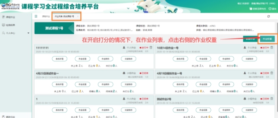 如上图,在课程开启打分的情况下,在作业列表,点击右侧的“作业权重”。