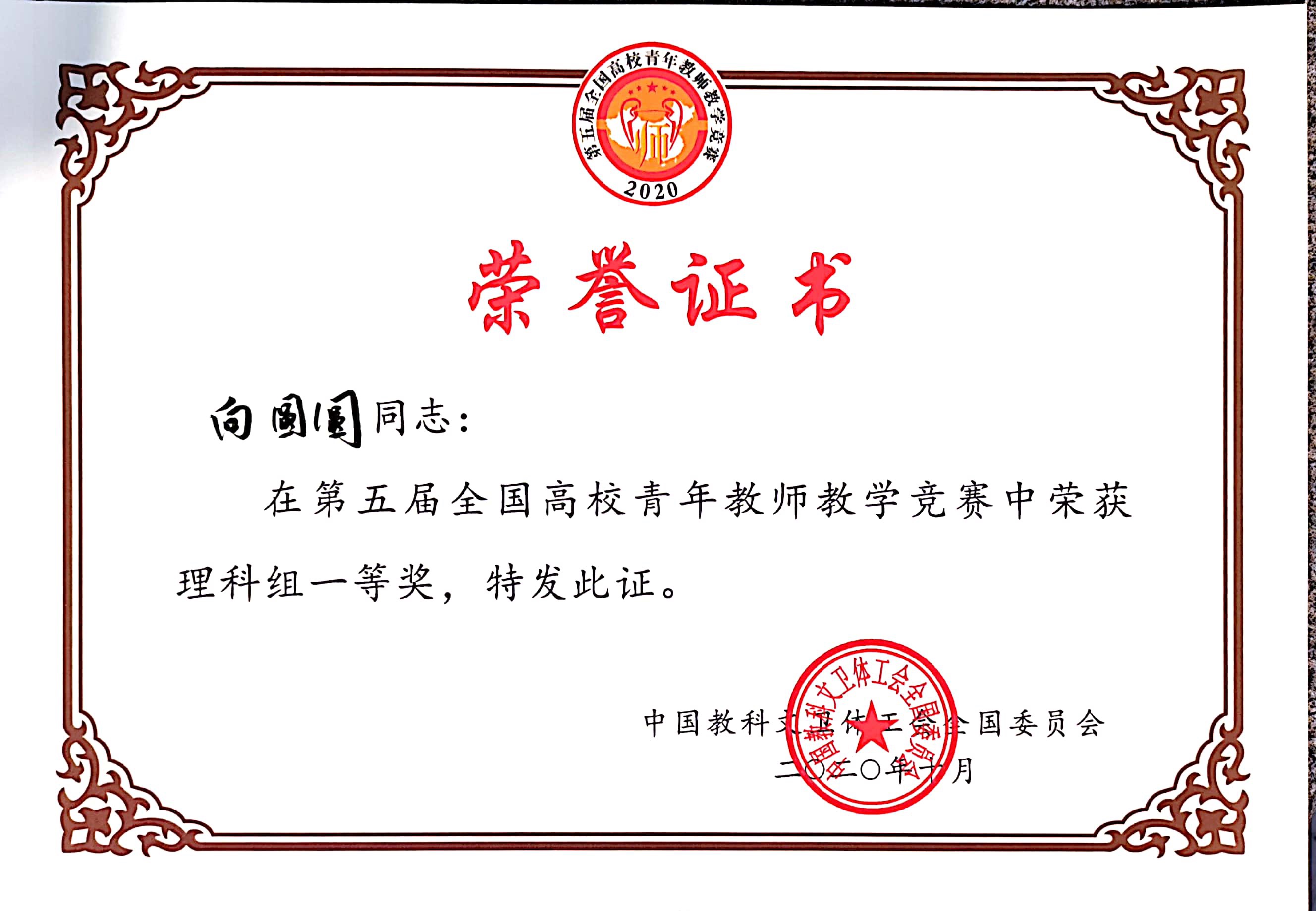 10月27日至30日,第五届全国高校青年教师教学竞赛决赛在南京大学举行。开云电竞网理学院向圆圆老师以江苏省高校青年教师教学竞赛理科组第一名身份代表江苏高校参赛,最终以全国第三名成绩荣获理科组一等奖。这创造了学校在理科组(前两届称自然科学基础学科组)的赛绩记录,也是继沈扬老师在2014年第二届全国高校青年教师教学竞赛中获一等奖(自然科学应用学科组,本届拆分为工科组和医科组)后,我校教师再获一等奖。