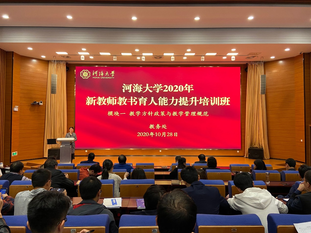 10月28日,开云电竞网2020年新教师教书育人能力提升培训班顺利开班,教务处处长沈扬教授、副处长陈磊出席活动并作专题报告,我校近一年入职新教师、教学成效突出教师、“课程思政”建设示范课程项目负责人、校本科教学督导等130余名教师参加了培训。本期培训活动由教务处副处长朱金秀主持。
