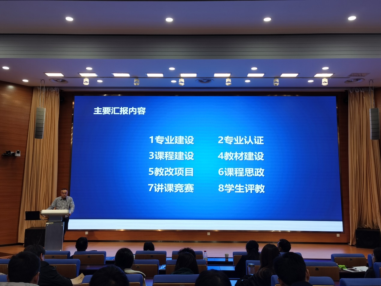 教务处副处长陈磊作了题为《强化教研教改,提升教学能力》的报告,主要从专业建设、专业认证、课程建设、教材建设、教改项目、课程思政、讲课竞赛、学生评教等方面进行了介绍,帮助新教师尽快熟悉教学环境,找准教学发展方向。