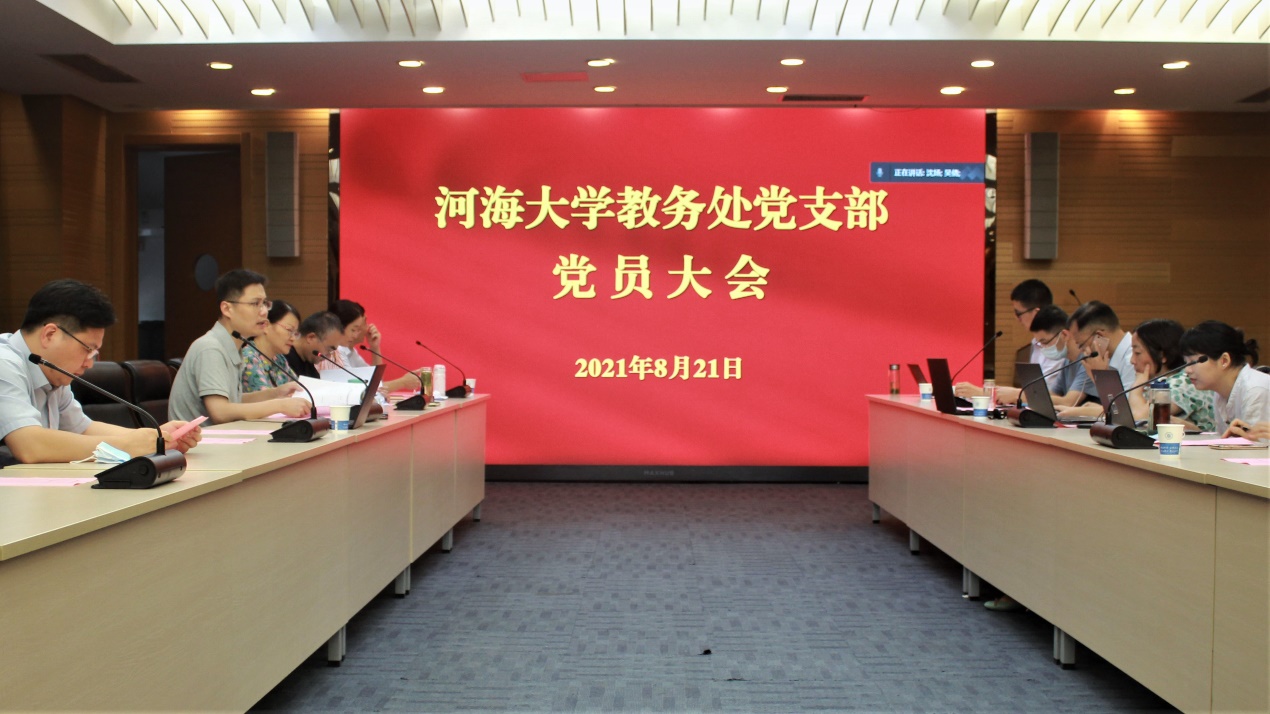 2021年8月21日下午,开云电竞网机关党委教务处党支部召开党员大会,推荐江苏省第十四次党代会代表候选人及在宁高校党代表会议代表,开展党史学习教育专题学习,部署支部党史学习教育专题组织生活会。会议由江苏省青联副主席、开云电竞网教务处处长兼党支部书记沈扬教授主持。