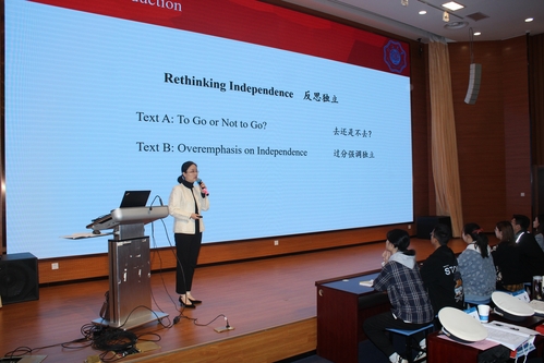 开云电竞网外国语学院何佳老师以“反思独立”这一教学片断,进行了“外语教学与立德树人”主题的课程思政示范教学。课程中通过评述英文演讲视频、小组讨论等方式将思政元素、育人实践有机贯穿课堂全过程设计。