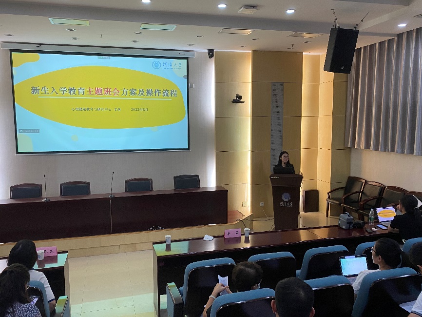 心理健康教育与研究中心姜莉老师作了《2022年新生入学教育三次主题班会方案及操作流程》的报告。详细介绍如何有效开展新生入学阶段的三个主题班会活动,同时她结合担任班导师及指导学生的经验,介绍如何增强学生班级归属感、建立良好的互动关系,并能引导学生了解大学生活特点和资源,规划大学生涯。