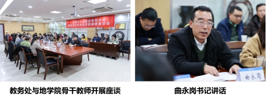 专题报告会后,教务处领导及各科室代表与地球科学与工程学院领导班子及骨干教师开展深度座谈。学院教师对教务处主动走访学院,认真听取教师的意见和建议表示热烈欢迎,就专业建设、课程建设等方面遇到的问题与困难提出了意见和建议。