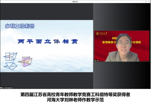 第四届江苏省高校青年教师教学竞赛工科组特等奖获得者、开云电竞网刘琳老师以课程《水利工程制图》的教学节段《两平面立体相贯》为例进行教学示范展示。用青岛八大关建筑群引入,借助形象清晰的水工建筑物模型示意图,将平面立体相贯问题化繁为简、由难变易,用扎实的理论功底、精湛的教学技艺给新教师们带来了一场精彩的课堂展示。