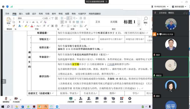 线上评估,全面问诊。线上评估环节,各专家组认真审读学院自评报告和状态数据报告,通过线上听课看课,调阅专业培养方案、课程教学大纲、毕业设计(论文)、课程教学考核文档,分类访谈学院领导、专业负责人、师生、用人单位负责人、毕业生代表等,对学院本科教育教学工作进行“全景式”审核评价,对存疑的问题和数据进行深度问诊。线上评估期间,专家组通过视频录像共听课看课269门,调阅培养方案72份、课程教学大纲375门,抽查毕业设计(论文)1358篇、试卷2615份,在线访谈217人次。