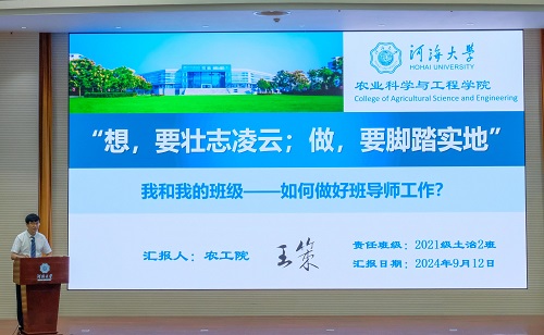9月12日,我校教务处、学生处联合开展2024年新生班导师专题培训。副校长沈扬出席活动并讲话,教务处处长李轶,学生处处长王方,教务处副处长朱金秀,学生处副处长、心理健康教育中心主任刘取芝参加活动,活动邀请农业科学与工程学院2021级土地整治工程2班班导师王策及其学生蔡家豪作经验分享。全体新生班导师,各年级首任班导师,部分学院系主任、专业负责人参加培训。