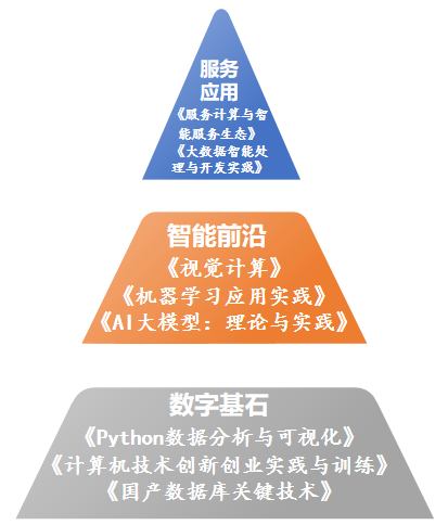 该模块旨在为学生奠定坚实的数字化基础,精选了《python数据分析与可视化》、《计算机技术创新创业实践与训练》及《国产数据库关键技术》三门课程。学生将系统学习数据处理、分析、可视化及创新应用的核心技能,深刻理解数据在决策制定中的关键作用。通过实操项目和案例分析,学生将理论知识转化为实践能力,为未来在数据科学及相关领域的深入发展奠定稳固的基础。