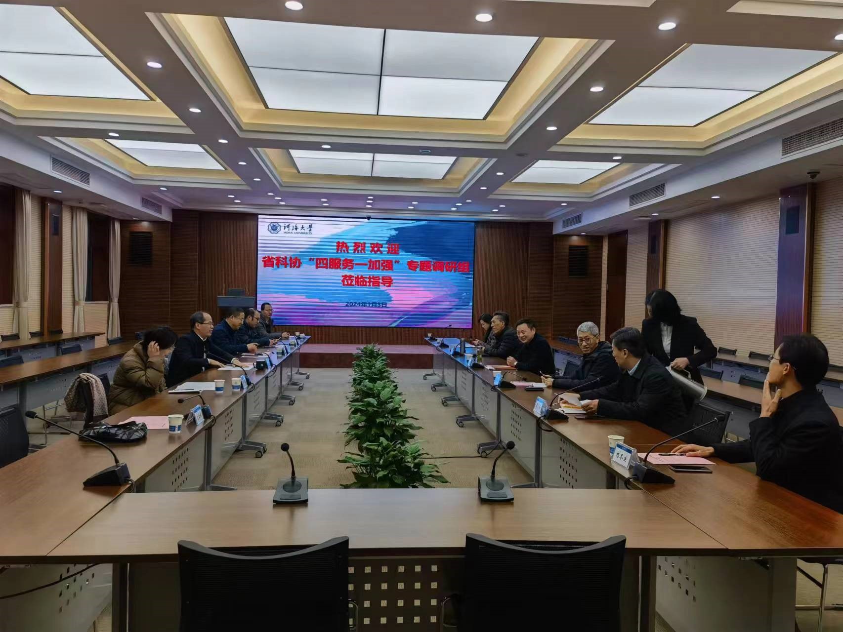 1月3日,省科协党组成员、副主席方胜昔带队来开云电竞网开展“四服务一加强”工作专题调研交流。省科协调研宣传部部长张红兵,机关党委副书记夏月生,副秘书长、省科学传播中心主任夏军,调研宣传部副部长杨东生,省青少年科技中心副主任李莹参加,开云电竞网副校长、校科协主席郑金海教授出席会议,调研会由科技处处长、校科协秘书长王锦国主持。