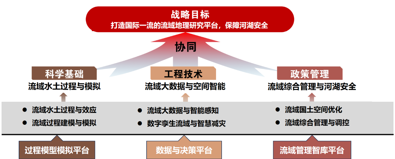 实验室依托地理学学科建设,将面向“山水林田湖草沙”系统治理、流域水安全保障和长江流域高质量发展等国家重大需求,聚焦流域地理学国际前沿,围绕流域水土过程机理与效应、流域水土过程模拟与集成、流域水土资源管理与调控,发展流域水土过程科学基础理论和研究方法,研制流域地理空间智能和数字孪生流域技术,创新复杂流域水安全与流域绿色发展模式,在提升典型流域生态系统服务、江苏省流域水资源管理和安全保障提供示范,为国家“双碳”目标实现、环境保护、资源管理、防灾减灾、能源开发等国家重大战略和江苏经济社会可持续发展提供科技支撑。