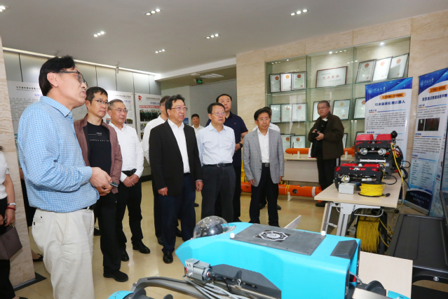 调研组一行首先来到校史馆,深入了解学校发展历程、校区布局,听取教学科研、人才培养、社会服务及校园文化等情况介绍。随后,调研组一行调研了水文水资源学院、水灾害防御全国重点实验室。详细听取了全球水灾害模拟预警与智能分析系统及相关案例的汇报。深入了解了全国重点实验室组织架构和研究方向,参观了水下机器人应用展示和人工模拟降雨实验大厅,并通过直播现场察看了新安江水文观测站野外基地、牛首山科技园实验大厅。