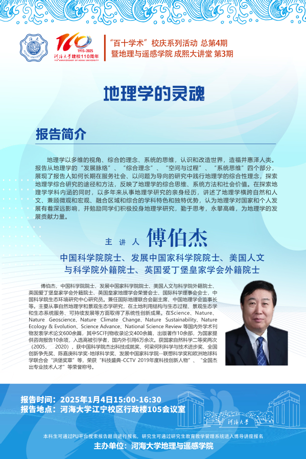 “百十学术”系列活动第4期——傅伯杰院士:地理学的灵魂