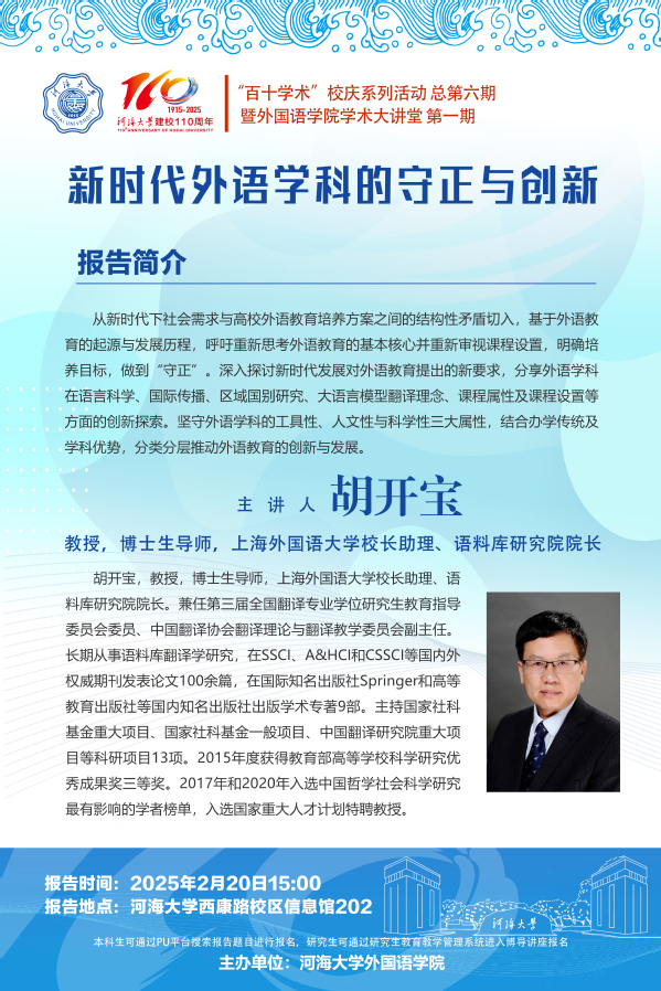 “百十学术”系列活动第6期——胡开宝教授:中国特色大国外交话语数据库综合平台的建设与应用研究