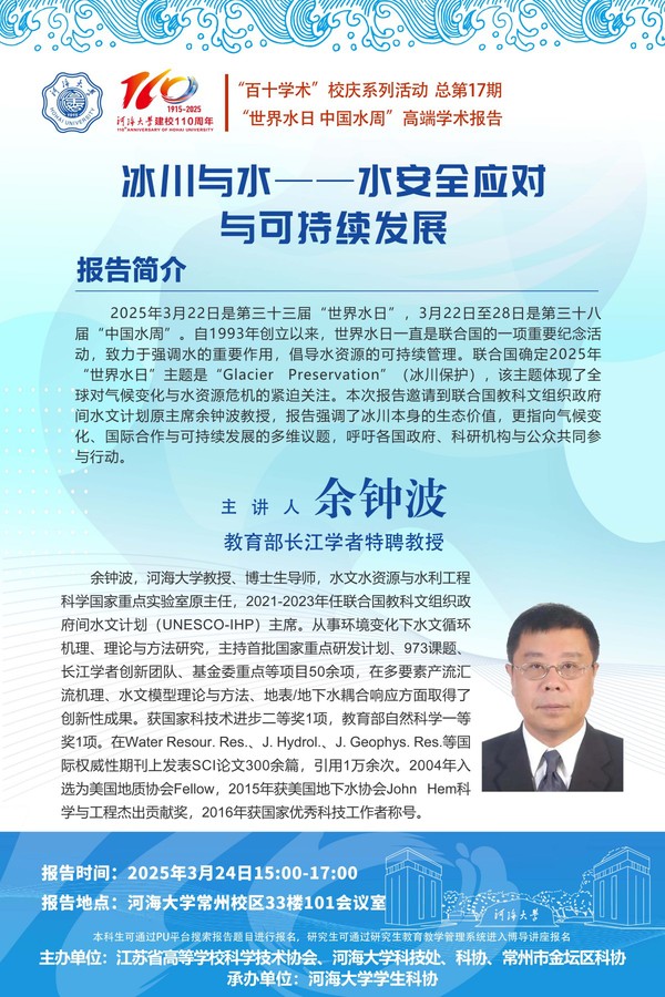 “百十学术”系列活动第17期——余钟波教授:冰川与水——水安全应对与可持续发展