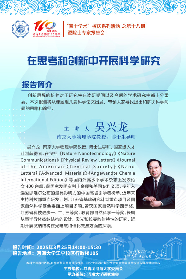 “百十学术”系列活动第18期——吴兴龙教授:在思考和创新中开展科学研究