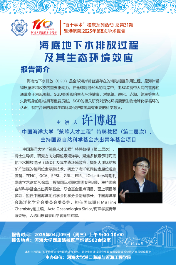 “百十学术”系列活动第31期——许博超教授:海底地下水排放过程及其生态环境效应