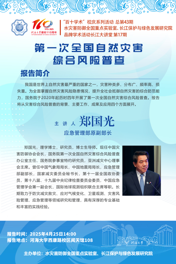 “百十学术”系列活动第43期——郑国光研究员:第一次全国自然灾害综合风险普查