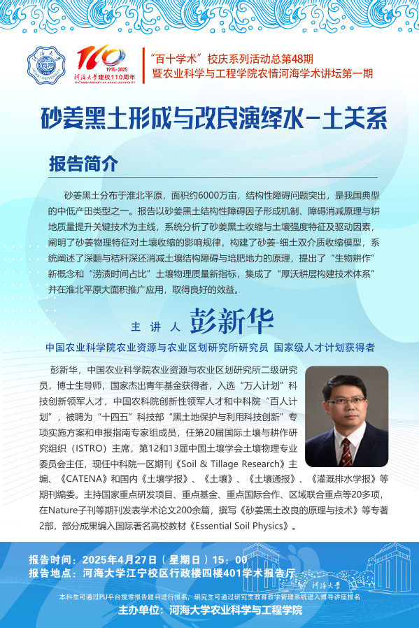 “百十学术”系列活动第48期——彭新华研究员:砂姜黑土形成与改良演绎水-土关系