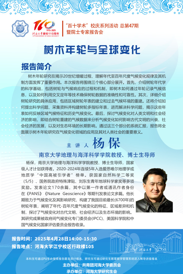 “百十学术”系列活动第47期——杨保教授:树木年轮与全球变化