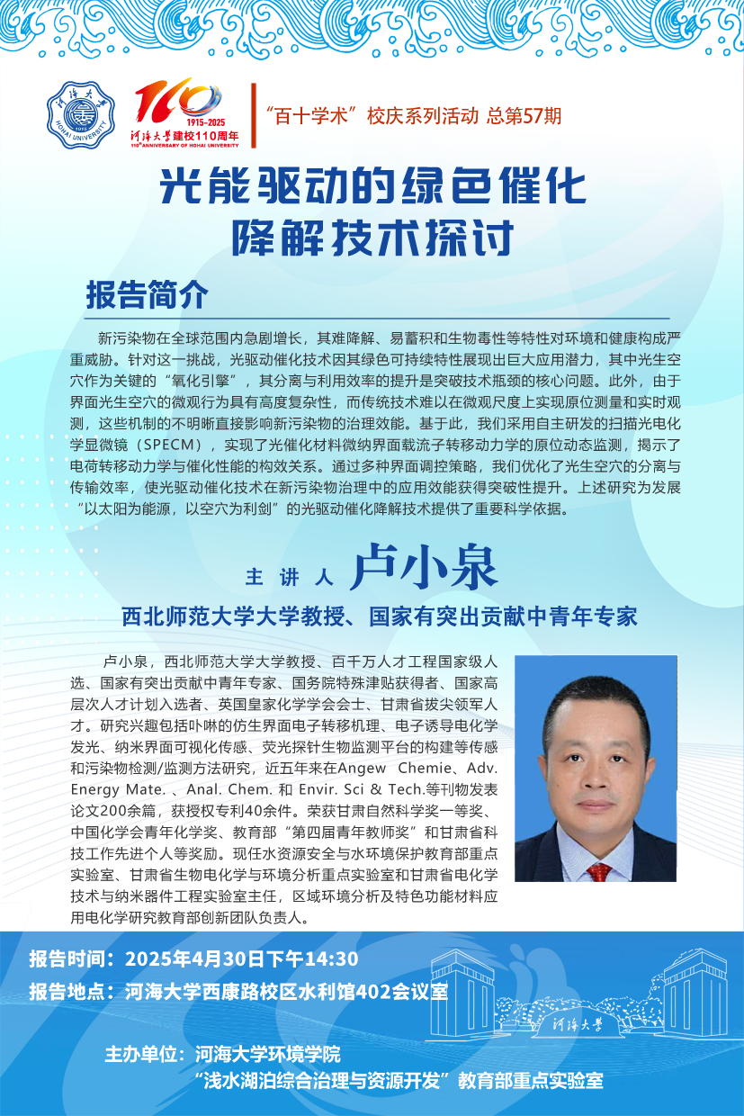 “百十学术”系列活动第57期——卢小泉教授:光能驱动的绿色催化降解技术探讨