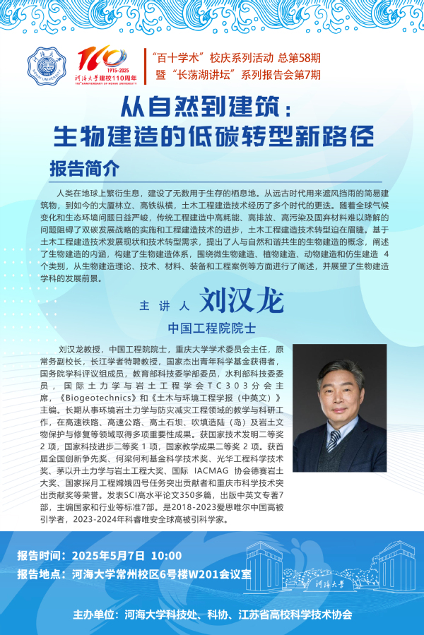 “百十学术”系列活动第58期——刘汉龙院士:从自然到建筑:生物建造的低碳转型新路径