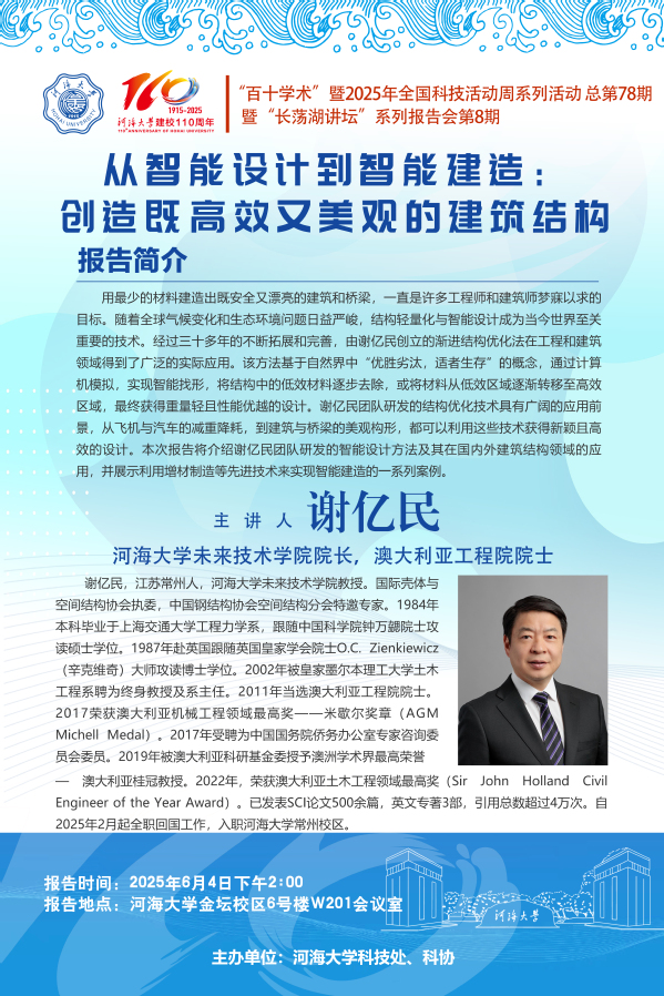 “百十学术”系列活动第78期——谢亿民院士:从智能设计到智能建造:创造既高效又美观的建筑结构