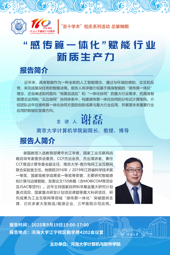 “百十学术”系列活动第98期——谢磊教授:“感传算一体化”赋能行业新质生产力