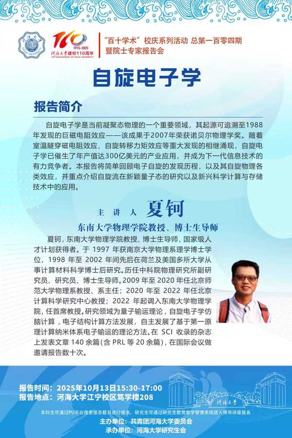 “百十学术”系列活动第104期——夏钶教授:自旋电子学