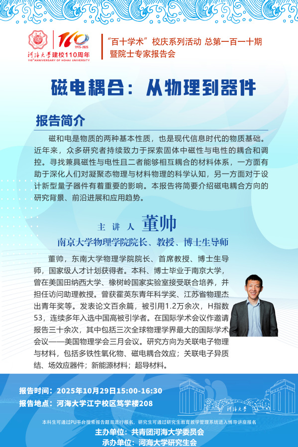 “百十学术”系列活动第110期——董帅教授:磁电耦合:从物理到器件
