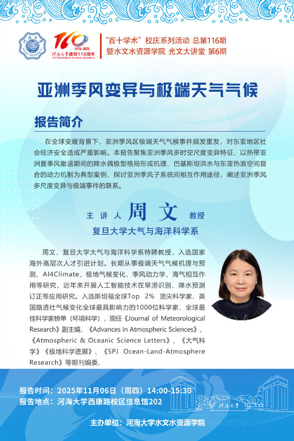 “百十学术”系列活动第116期——周文教授:亚洲季风变异与极端天气气候