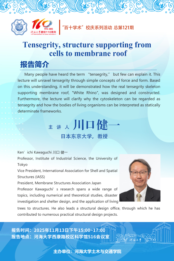“百十学术”系列活动第121期——川口健一教授:Tensegrity, structure supporting from cells to membrane roof