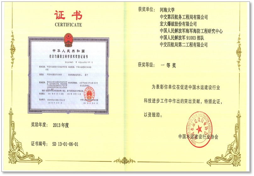 该成果于2013年获中国水运建设科学技术奖一等奖。