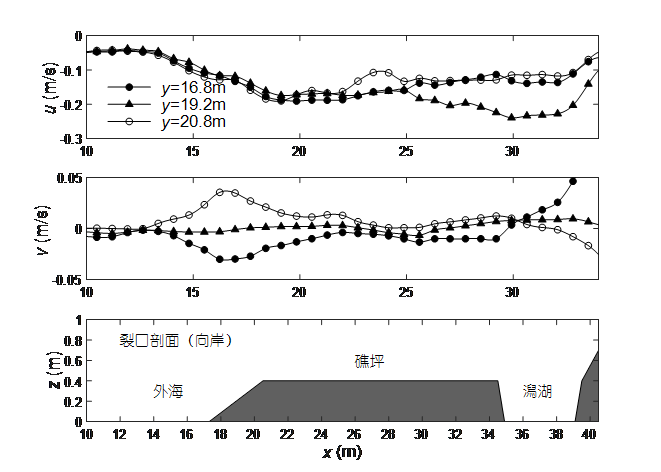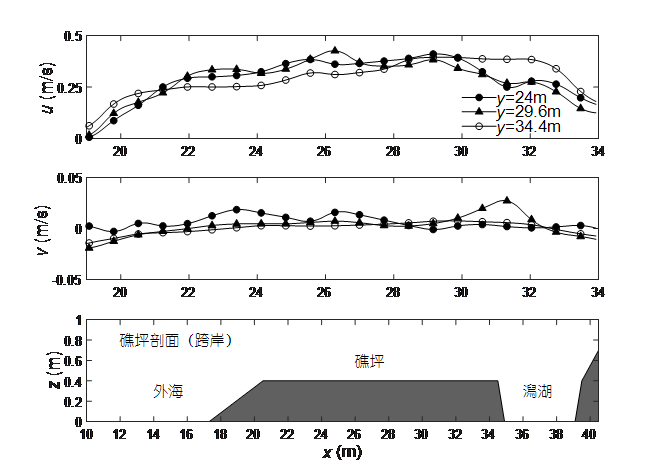 潟湖沿岸剖面流速沿程变化