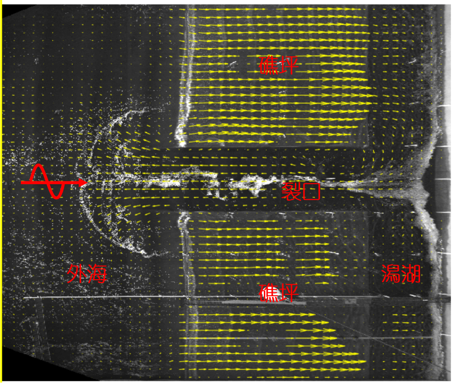 珊瑚礁地形上波浪传播变形和波生流系统对生态、环境、地貌和工程建设有着重要的影响,但是有关珊瑚礁-潟湖-裂口海岸波致环流系统的整理模型实验研究未见报道。本实验室与交通运输部天津水运工程科学研究院、湖南省水沙科学与水灾害防治重点实验室的研究人员,根据法属玻利尼亚泡泡湾珊瑚礁海岸实测资料,建立了1:50的珊瑚礁-潟湖-裂口海岸整体物理模型,采用波高仪、流速仪和表面流场测速系统测量分析了不同位置的波高和流场分布特征。模型实验研究发现:波高在礁坪向岸方向沿程逐渐减小,增水先增大后减小;波高在潟湖沿岸方向裂口处最大,向两侧逐渐减小,增水则两侧大中间小;波高在裂口中变化不大,增水则在靠近潟湖处增大较多。波浪到达礁坪后发生破碎,礁坪上水流以向岸流为主,存在着先增大后减小的趋势。水流到达潟湖后方向发生第一次90度旋转,转变为对称地指向裂口的沿岸流,流速从两侧到裂口先增大后较小。沿岸流在裂口附近汇聚,方向发生第二次90度旋转,进而形成了裂口中的离岸流,流速同样是先增大后减小。离岸流到达礁缘后继续向外海传播一段距离同时发生第三次90度的方向旋转,形成从裂口指向两侧的沿岸流。礁坪上向岸流变化是平均水位梯度和辐射应力相互作用的结果,在裂口中的离岸流驱动力主要为辐射应力,而潟湖中的沿岸流变化由平均水位梯度决定的。