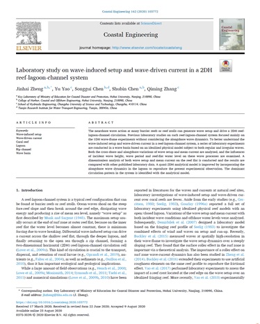 实验室主任郑金海教授以第一作者在《Coastal Engineering》上发表关于珊瑚礁-潟湖-裂口海岸整体物理模型试验成果,“Zheng Jinhai*, Yao Yu, Chen Songgui, Chen Shubin, Zhang Qiming. Laboratory study on wave-induced setup and wave-driven current in a 2DH reef-lagoon-channel system. Coastal Engineering, 2020, 162: 103772”。