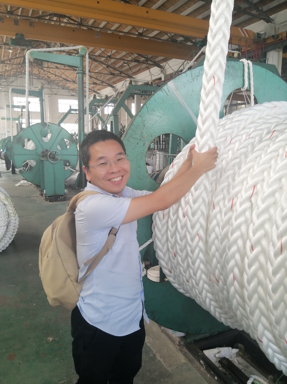 2020年9月9-10日,我实验室连宇顺副研究员前往扬州神龙绳业有限公司和江苏香川绳缆科技有限公司,开展纤维缆绳的行业现状调研。深海纤维系泊缆绳是一个极为重要的海洋工程受力构件,在港口海岸及近海工程、船舶与海洋工程中都有极为重要的应用,是海洋平台安全系泊定位和船舶靠港安全靠泊的关键组件。在“海洋强国”战略和“一带一路”的倡议下,开展纤维缆绳的研发和工程应用的研究,具有重要的工程意义和社会经济价值。