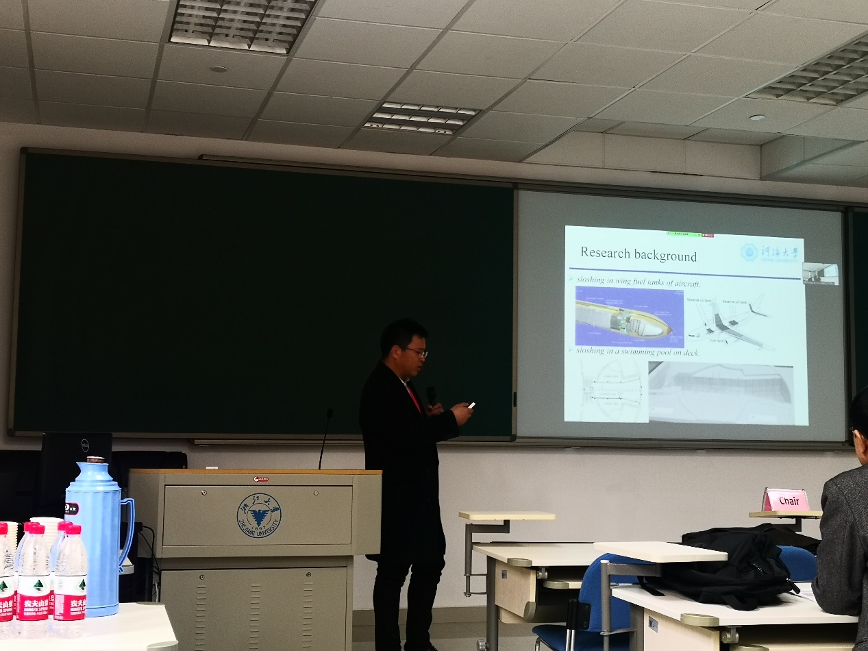 期间龚政教授主持了Estuary and coastal environment and eco-hydraulics分会场,作了题为“A new in-situ annular flume for measurements of the erosion threshold on intertidal flats”的报告。张弛教授主持了Coastal hazards and integrated management options分会场,张弛教授作了题为“Beach safety accidents in Chinese mainland coasts”的报告。薛米安教授主持了Field measurement, floating bodies, wave generation and analysis分会场,作了题为“Numerical study of porous material layer effects on mitigating sloshing”的报告。