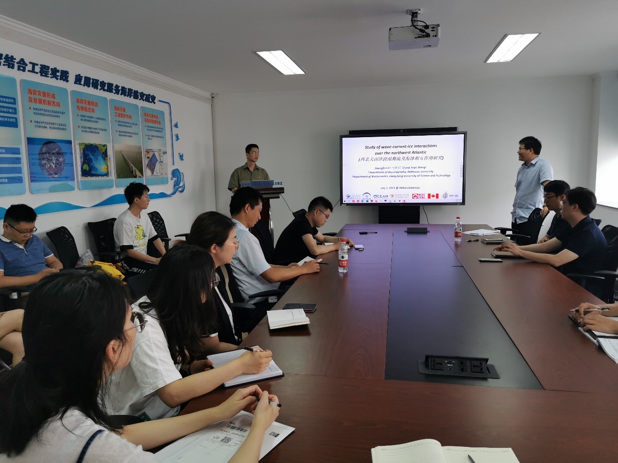 林尚飞博士后作了题为“西北大西洋波浪海流及海冰相互作用研究”的学术报告,报告详细介绍了林尚飞博士后的代表性云开电竞app下载地址,包括海洋波浪与海流的数值模拟,波浪海流及海冰相互作用,及海气交换等。会后,林尚飞博士后和与会人员就海冰数值模拟和斯托克斯漂流对海洋波浪频率的影响展开了讨论与交流。