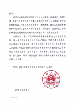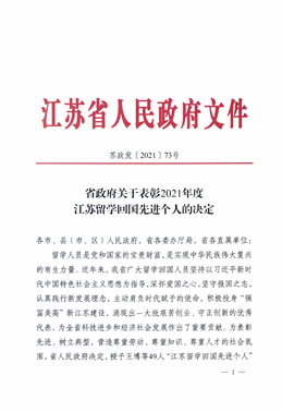 11月12日,江苏省人民政府发布《省政府关于表彰2021年度江苏留学回国先进个人的决定》(苏政发【2021】73号),授予实验室主任郑金海教授“江苏留学回国先进个人”荣誉称号,表彰其作为留学人员代表为科技进步和经济社会发展作出的重要贡献。
