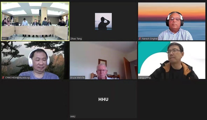 国际合作专家新西兰奥克兰大学Bruce Melville教授、Naresh Singhal副教授、新加坡南洋理工大学Yee Meng Chiew教授及外校项目课题负责人江苏大学成亮教授及其团队成员线上参加了会议;项目负责人郑金海教授、课题负责人张继生教授、管大为教授、贺瑞教授及参与项目研究工作的研究生现场出席了研讨会。会上项目各课题负责人详细汇报了2021年的研究进展及相关成果,并介绍了后续的研究计划。项目组讨论了研究进展及研究计划,为新冠肺炎疫情防控常态化背景下2022年研究工作的顺利开展奠定了良好基础。