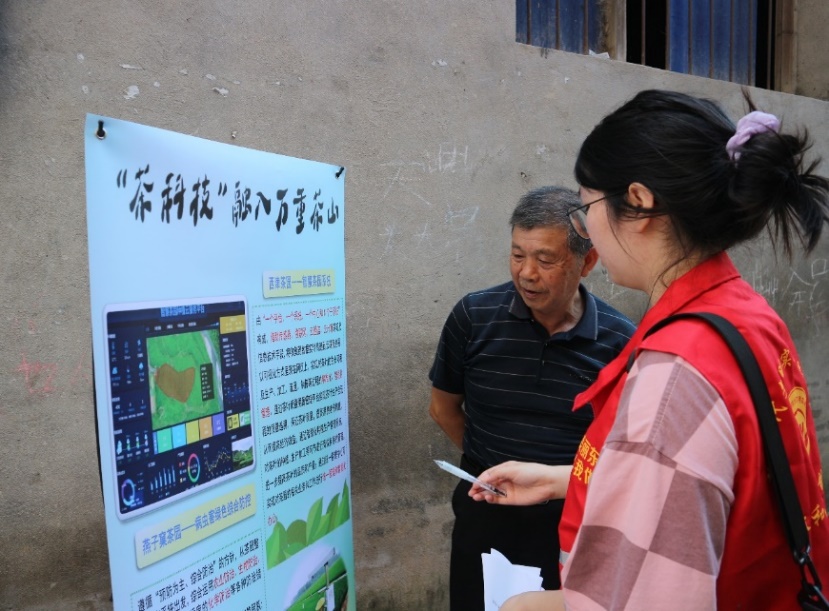 在调研团队前期前往三座生态茶园示范基地实地学习积累经验、向政和县白茶非遗传承人进行请教的充分准备基础上,7月13日,调研团的成员们前往政和县东平镇进行实地助农宣传,以三家南平市生态茶园示范基地的代表性先进技术为实例,介绍茶业数字化技术运用效益与先进经验。