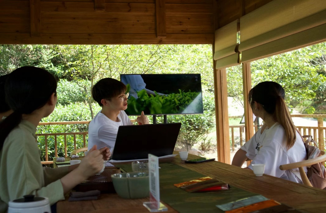 为响应习总书记“三茶”统筹发展指示,将生态茶园建设作为切入点,7月10日,调研团的成员们前往武夷山市燕子窠生态茶园进行参观学习,在品生态茶、阅生态茶的同时通过访谈提问了解其生态数字化技术运用经验与实际效用等调研内容。燕子窠生态茶园以数字茶山检测系统为核心科技抓手,以大豆油菜套种茶叶的科学模式实现绿色增肥、改良土壤环境并防止虫害的目的,在提高茶叶品质、追求茶业高质量发展的同时节约人力成本,注重科技投入,回应当下市场需求,追随时代发展趋向。跟随着习总书记的步伐,调研团对于生态茶产业转型发展中数字化技术的使用原理和产生效益有了初步认识,对于科技下乡助力生态环保推广的重要作用有了更深见解。